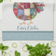 A cute little chicken theme kitchen towel that is personalized with your name. Hen is created in a colorful patchwork patterned design with a tiny polka dot background in blue. See other kitchen decor items in this same design collection.