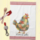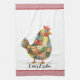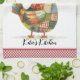 A cute chicken themed kitchen towel with a colorful patchwork hen accented with a red gingham style checked border. Personalize it with your name or other text caption. See other kitchen decor items in this same design collection.