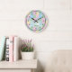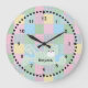 Personalize this so very cute patchwork and gingham kitty cat clock for baby's nursery. Just edit the text in the easy Zazzle editor. Design will fit any almost color scheme in baby's room.