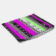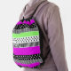 Patchwork of black and white and neon stripes with crimson and green fabric