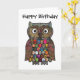 Birthday Card with a cute patchwork collage owl illustration made from individual photographs of flowers, animals, landscapes, sunsets and still life.