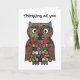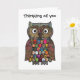 Thinking of you card with a cute patchwork collage owl illustration made from individual photographs of flowers, animals, landscapes, sunsets and still life.