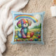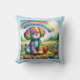 This pillow captures the essence of joy and whimsy with a patchwork puppy sitting in the midst of a lush, colorful flower field. Each segment of the puppy's quilted body is a kaleidoscope of patterns and hues, reflecting a cheerful and vibrant personality. A radiant rainbow arches gracefully in the sky, symbolizing hope and dreams, while the bright sunshine adds warmth to the serene landscape. This playful pup invites viewers into a world where imagination blooms as freely as the flowers at its paws. The overall effect is one of happiness, perfect for adding a touch of playful charm to any product.