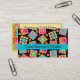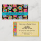 Make an impression with this business card for your quilt business, shop or guild. Coordinate with a matching business card holder. This business card features a quilt block design based on original art by Phyllis Dobbs. The design features favorite patchwork quilt blocks such as a log cabin, pinwheel, star plus unique blocks created in vibrant and dynamic colors that pop on black background. The colors are fuchsia pink, orange, turquoise, yellow, red, black and green. Fully customizable for all your business and contact information.