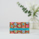 Make an impression with this business card for your quilt business, shop or guild. Coordinate with a matching business card holder. This business card features a quilt block design based on original art by Phyllis Dobbs. The design features favorite patchwork quilt blocks such as a log cabin, pinwheel, star plus unique blocks created in vibrant and dynamic colors on a warm brown background. The colors are fuchsia pink, orange, turquoise teal blue, yellow, red, brown and green. Fully customizable for all your business and contact information.