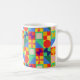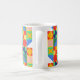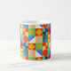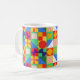 This mug has a Bauhaus design of squares with odd shapes inside, repeated across the design.