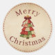 Cozy and nostalgic, this round Christmas sticker features a vintage patchwork-quilt tree on warm cream with “Merry Christmas” curved type and a red stitched border. Perfect as an envelope seal, gift label, party favor, or small-business packaging accent. Coordinates with the Vintage Patchwork Quilt Christmas collection.