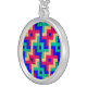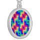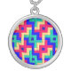 A Necklace with a bright and colorful abstract design from a patchwork cot-quilt that was hand-made by Judy Adamson.