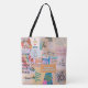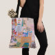 pink, yellow, and green half circle shapes. This fun, artsy tote bag is full of artsy style and can be customized with your name!