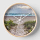 The original photograph by ZoeSPEAK on this Wall Clock features a view of the ocean, seen from a sand pathway through wild grasses leading to the beach. The color of the sky and the waves...could be a stormy day.