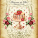 Pâtisseries de Paris Gâteau de Fraise or Pastries of France, Strawberry Cake on Antique Parchment Paper adorned with Red and Pink Roses. Finished off with a Crown and a Cherub Flourish and who could resist? Scrumptious!
