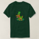Illustrated dog with its tongue hanging out. The dog has shamrock spots and wears a tall green hat.