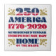 This patriotic ceramic tile makes for a great gift or souvenir and keepsake to celebrate America's 250th anniversary. The design features a modern typography design and other design elements, with red, white, blue and gold colours on a white background. The text reads: 250, America, 1776 - 2026, semiquincentennial, Independence Day, and home of the brave. Happy Birthday America!