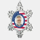 Patriotic American Flag Custom 2 Photo Memorial Snowflake Pewter Christmas Ornament