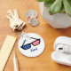A keychain featuring an illustration of a pair of black retro sunglasses. Stars and stripes adorn lenses. Personalize with your name in blue.