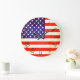 A unique antique style America flag clock in red, white and blue hues. Designed using the flag of America and adding a little vintage treatment. Produced by Sarah Trett. Would look great in a patriotic bedroom or lounge or bar.