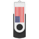 Personalized Patriotic American flag swivel USB pen flash drive. USA stars and stripes red white and blue pride design. Elegant stylish tyography design personalized with custom name or monogram. Change the quantity to get the cheapest price per pen drive. Chic pendrives available in different colors. Cute patriotic gift idea for men, women and kids. Also makes a nice promo give away for corporate company or 4th of July Independence Day party. Atachable to keychain or cord. Trendy School / Office supplies.