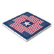 Patriotic stone trivet with four American flags surrounding white star on blue background