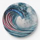 A powerful wave with the pattern of the American flag on it merging the natural force of the ocean with a strong patriotic symbol