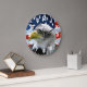 Custom Wall Clock has close up photo of Bald Eagle in front of the American Flag.