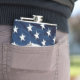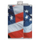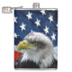 This patriotic flask is adorned with a photo of a bald eagle in front of the American Flag.