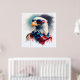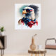 Patriotic watercolor bald eagle with blue glasses and bandana in the colors of the American flag