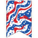 Banner flags are shown in a patriotic stars and stripes mod print.