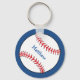 This patriotic keychain features a red and white baseball on a blue background. Easily personalize the text for a special sports fan or remove entirely. Customize the blue background to the color of your choice.