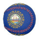 Crafted with precision and attention to detail, this baseball ball showcases the vibrant colors and symbolism of the New Hampshire state flag. The design prominently displays a blue field with the state seal centered in the middle. The seal features the frigate Raleigh sailing near a granite boulder with the state motto "Live Free or Die" written in yellow above the seal.