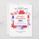 A red, white and blue BBQ party invitation featuring a cluster of flowers in red, blue and pink against a white backdrop. It can be used to celebrate the 4th of July or for a birthday celebration. (<a href='https://www.freepik.com/free-vector/floral-women-s-day-background_3717800.htm'>Designed by Freepik</a>). <br/><br/>The card is easy to customize with your wording, font, font color and choice of six paper types.<br/><br/>Not exactly what you're looking for? All our products can be custom designed to meet your needs at no extra charge.<br/><br/>Simply contact us at askcottonlamb@gmail.com<br/><br/>Coordinating products available: