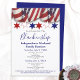 This design features blue and gray template text for a family reunion weekend design over a white background with red, white, and blue stars and bunting along the top. Fill in the text fields, remove any text and/or click customize to select a font color, size, and style your prefer.
