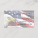 Patriotic business cards in a cool design that includes a bald eagle and American flag with stars and stripes in the background so your business information will stand out yet still establish a patriotic theme. Designed for an any business or professional that wants to express their US pride.