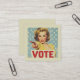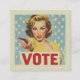 A retro-styled poster featuring a glamorous woman with blonde hair and bold red lipstick, reminiscent of 1950s pin-up art. She is pointing directly at the viewer in a pose similar to the iconic "Uncle Sam Wants You" recruitment posters. Behind her is a starry blue background, and the word "VOTE" is displayed prominently in large, bold red letters at the bottom. The overall design evokes a sense of patriotic urgency, encouraging civic participation.