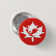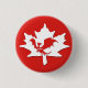 A red dragon with 3 white maple leaves emblazoned across its chest flies over a white maple leaf graphic on a red background. available in round or square pins