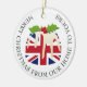 Fun, patriotic CHRISTMAS PUDDING Ornament, incorporating the flag of THE UNITED KINGDOM. Text says MERRY CHRISTMAS FROM OUR HOME TO YOURS and is CUSTOMIZABLE so you can replace and personalize with your own greeting. Lovely gift for neighbors, family and friends.