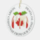 Fun, patriotic CHRISTMAS PUDDING Ornament, incorporating the flag of CANADA. Text says MERRY CHRISTMAS FROM OUR HOME TO YOURS and is CUSTOMIZABLE so you can replace and personalize with your own greeting. Ideal gift for neighbors, family and friends.