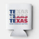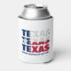 Patriotic Custom TEXAS FLAG can cooler. Stylish, patriotic customizable TEXAS FLAG single-can cooler, showing TEXAS TEXAS TEXAS designed in the flag of Texas. This design appears on the front and back. There is CUSTOMIZABLE TEXT that reads WHERE FRIENDSHIP MATTERS, which you can personalize by adding your name, motto or creating your own text. The state motto of Texas is Friendship, and the Spanish word, 'tejas', means 'friends', from which the name Texas is said to derive. This stylish Texas can cooler would make a great favor giveaway or stocking stuffer gift for Texan friends, for outdoor parties and BBQs, and for anyone who loves the American 'Lone Star State', especially at Christmas, birthdays, anniversaries, and for Texas Heritage Month. Choose from a wide selection of Texas-themed cards, invitations, party supplies, clothing, home decor and gifts, designed by Berean Designs. Other sizes listed separately.
