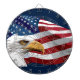 Dart Board shown with a patriotic USA Flag and eagle graphic print.