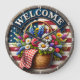 Decorative Wall Clock Featuring a Patriotic Design with Flowers and Text Welcome