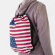 This stylish drawstring backpack combines practicality with a bold tribute to the United States. The eye-catching design prominently displays the iconic American flag, making it a unique and functional way to celebrate your love for the country.