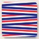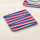 Hard plastic drink coaster shown in a patriotic ribbons print, perfect for your July 4th home decor .