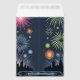 The front showcases full artwork for maximum visual impact, while the back continues the coordinated fireworks-and-skyline theme for a cohesive double-sided look. Ideal for patriotic gifts, holiday mailings, event materials, commemorative keepsakes, party packaging, and small business shipments that deserve standout branding.