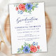 Patriotic Floral Red White Blue Graduation Party Invitation