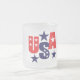 This frosted coffee mug is shown with a patriotic USA stars print.