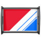 This patriotic sporty design features white diagonal racing stripes against bright red and blue backgrounds.
