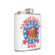 Well made flask, a little better than I had expected. Flask came in clear plastic box which gave it a nice presentation when I took it out of the zazzle packaging. Image is not printed on flask but on sticker. Don't know how this will hold up I haven't used it yet. This would make a Great gift! I plan to purchase more for friends! Cheers. I thought a little brighter than computer. Very crisp, writing wasn't