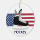 Patriotic Hockey Skate Design Ornament with customizable text.