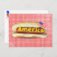 Hot dog on red and white gingham for 4th of July BBQ party or any other patriotic American holiday.