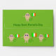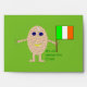 This envelope features a funny cartoon of an egg with arms and legs. The egg has arms and legs and a small crack in its head exposing the white inside. It has blue eyes with a black pupil and a big smile where the yolk of the egg can be seen. The eggshell looks rough. This patriotic Irish egg proudly holds its flag and there is green text below the flag that reads "it's all about the craic". This fun design is great for Saint Patricks Day or for proud Irish men and women. There is customizable text on the back so you can personalize it. There is room on the front to affix postage. This envelope will hold any A7 sized greeting card. .