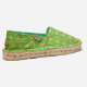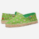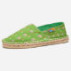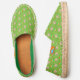 This awesome pair of espadrilles features a funny cartoon of an egg with arms and legs. The egg has arms and legs and a small crack in its head exposing the white inside. It has blue eyes with a black pupil and a big smile where the yolk of the egg can be seen. The eggshell looks rough. This patriotic Irish egg proudly holds its flag and there is green text below the flag that reads "it's all about the craic". This fun design is great for Saint Patricks Day or for proud Irish men and women.